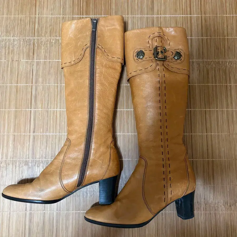 베이지 가죽 롱 부츠 웨스턴 부츠 아메카지 y2k