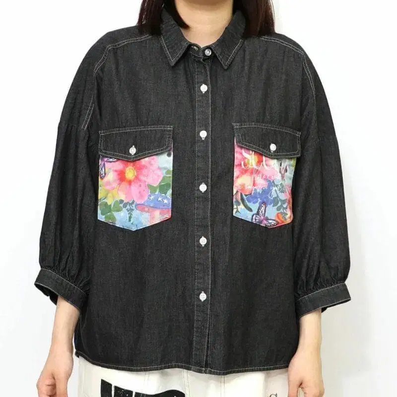 스칼라 152698: 꽃무늬 포켓 데님 셔츠
