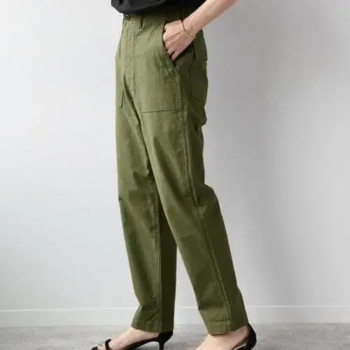 • 누아르 라벨 [1] 테이퍼드 팬츠 그린 뒷 허리밴딩 성숙 캐주얼