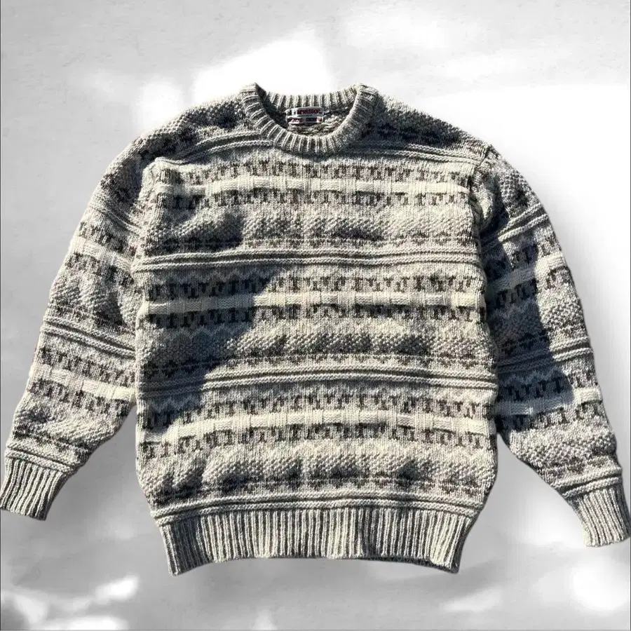 울 100% 올 패턴 니트 스웨터 | 두꺼운 빈티지