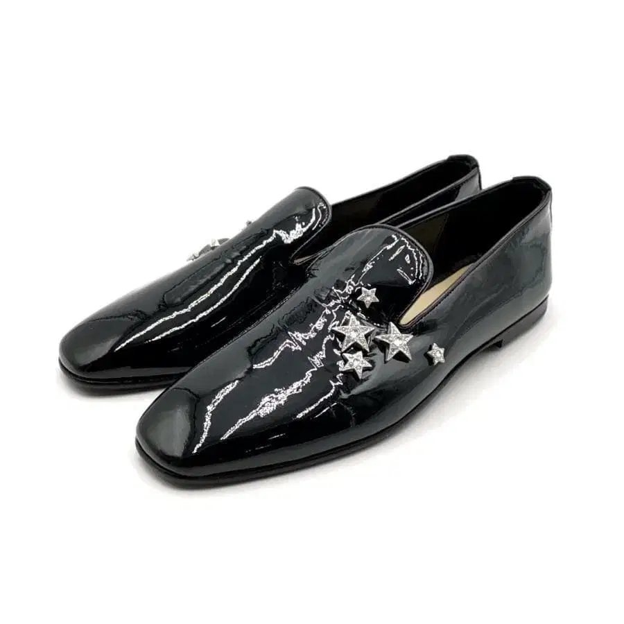 자동 번역되었어요. 원문보기무료배송 컨디션 최상 지미추 JIMMY CHOO 플랫슈즈 펌프스 신발 에나멜 패턴트 레더 스타 별 스터드 이탈리아제 37 1/2 24.5cm 상당 블랙 블랙 계열 여성용