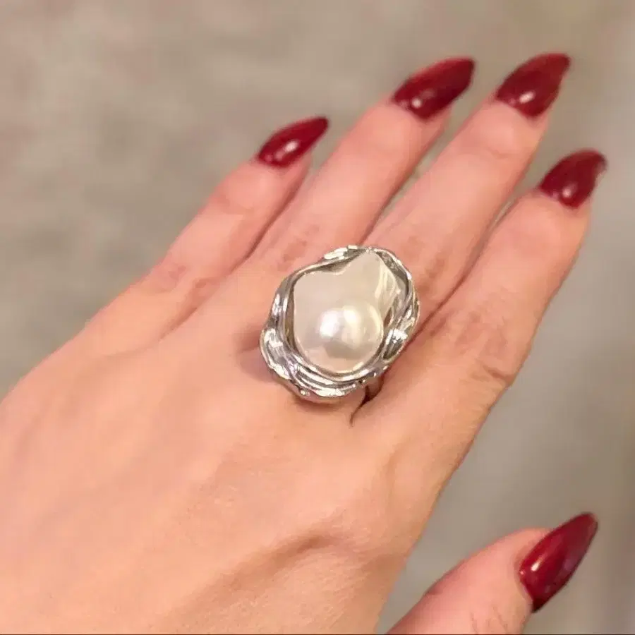 투모로우랜드 실버 컬러 모조 진주 반지 불규칙한 모양 12호