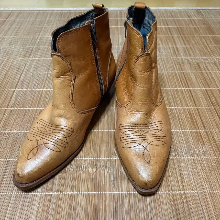 가죽 베이지 웨스턴 부츠 숏부츠 아메카지
