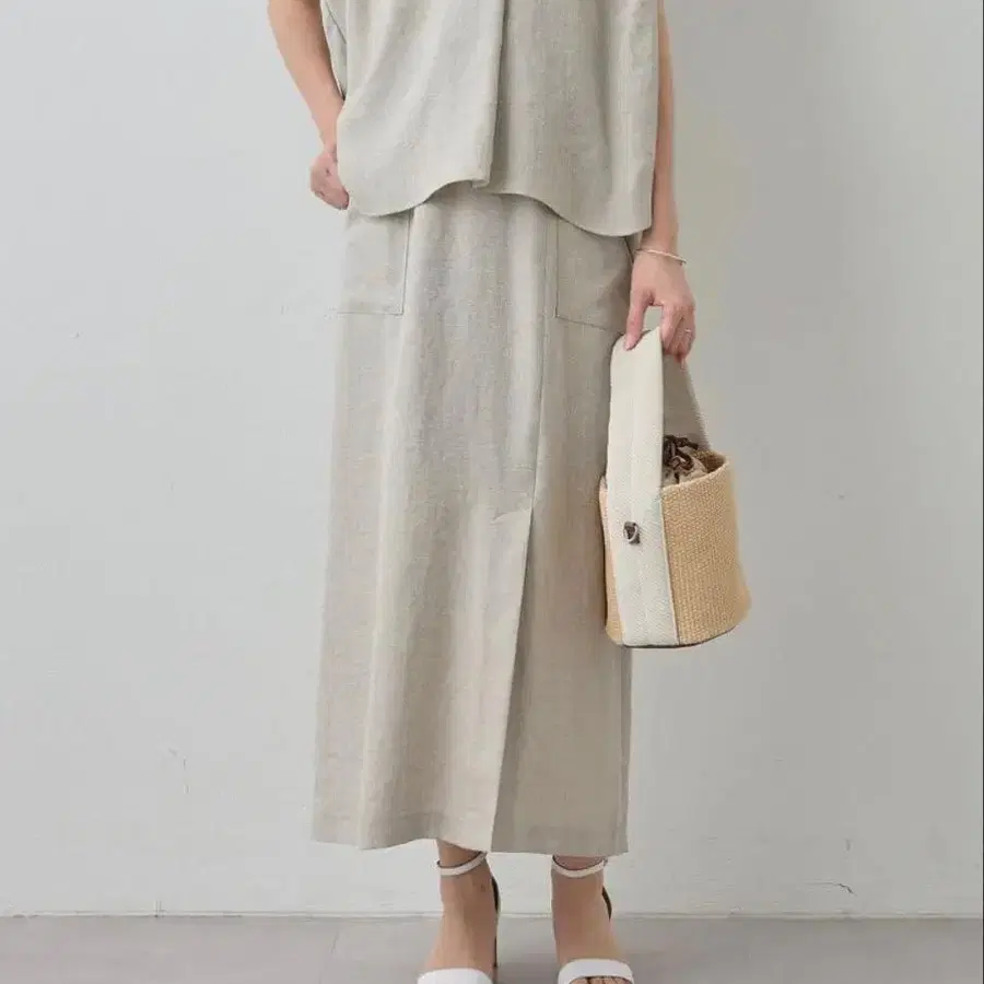 비어즐리 LIVETART 린넨 혼방 합성섬유 포켓 스커트 화이트 M