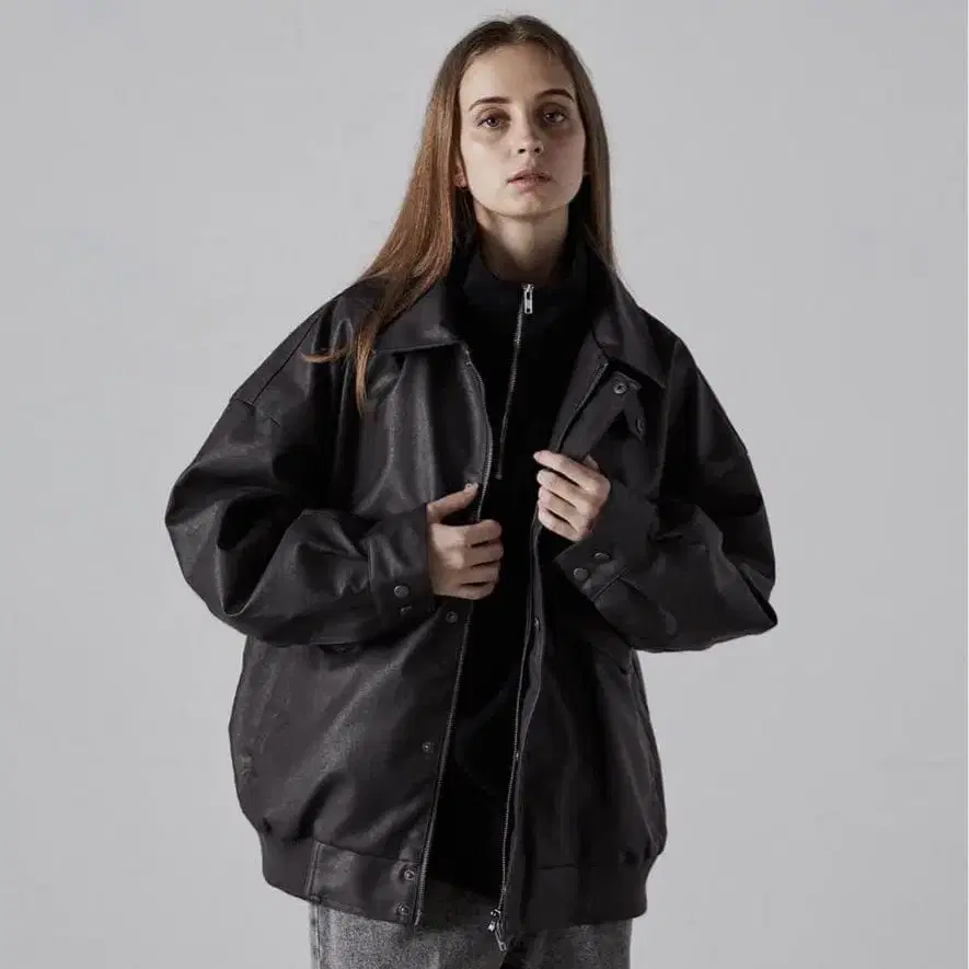 [ CLEL ] 빈티지 디자인 인조 가죽 블루종 차콜 그레이