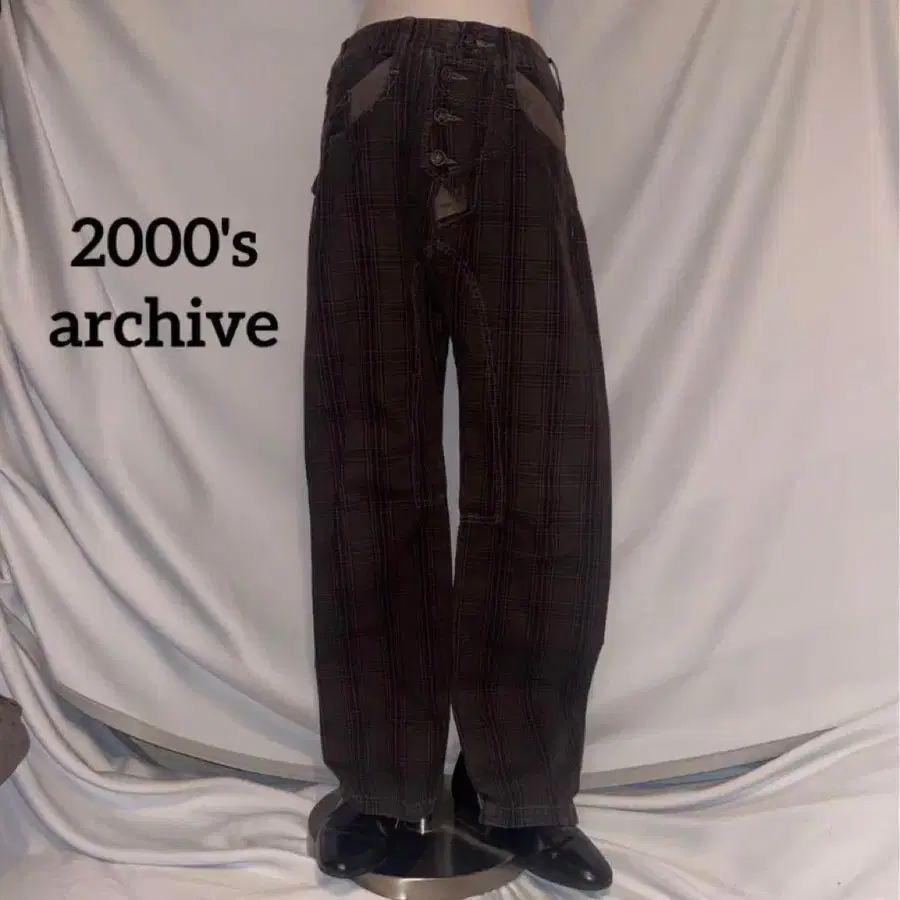 00s 체크 팬츠 워크 기믹 Y2K archive 아카이브