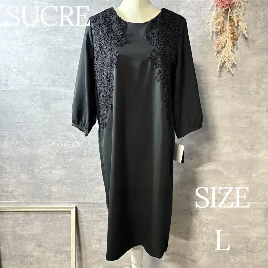 미사용 새상품 SUCRE 레이스 자수 블랙 포멀 원피스 빅 사이즈