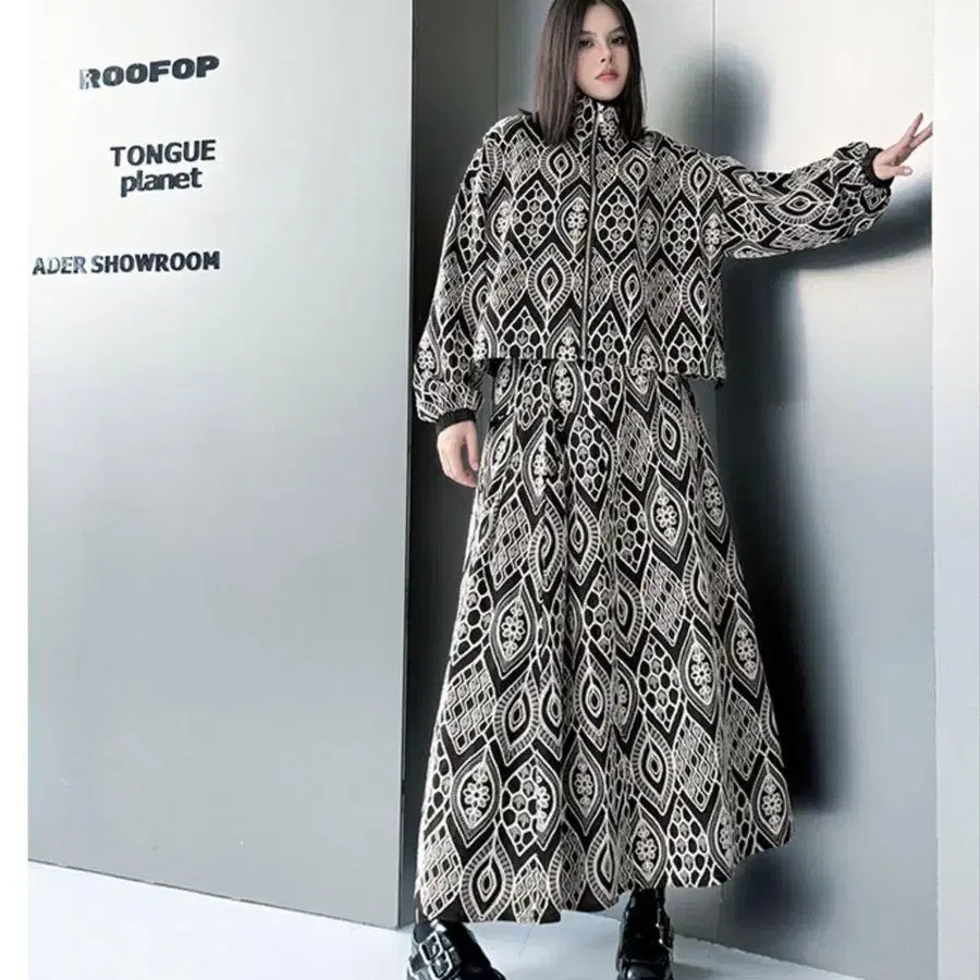 기하학 패턴의 자켓과 롱 스커트 셋업으로, 착용 시 원피스 같은 느낌을 주며 존재감 있는 패션을 연출합니다. 출퇴근부터 가벼운 외출까지 폭넓게 활용 가능한 아이템입니다. 다양한 계절에 돌려입기 좋은 우수한 아이템입니다. 이 한 벌로 코디가 완성됩니다 ♪ 하의와의 궁합도 좋습니다. 지퍼를 끝까지 채워 블라우스처럼 연출할 수 있습니다. 이너를 입고 오픈해서 입으면 또 다른 분위기를 연출하는 뛰어난 아이템입니다. 뱃살을 커버해 주는 여유로운 실루엣입니다. 총 195,490원 셀렉샵 약 20,000엔에 구매. 상하의 세트 희망 시 세트 할인이 가능하니, 댓글란으로 연락 주세요. 상담해 드리겠습니다. - 디자인: 기하학 패턴의 블랙과 화이트 프린트 - 스타일: 자켓과 롱 스커트 셋업 - 소재: 약간의 탄력이 있지만 부드러운 느낌의 원단 - 사이즈: 프리 - 특징: 여유로운 실루엣 - 신발: 블랙 부츠를 매치한 스타일 방문해 주셔서 감사합니다. 사이즈 - FREE SIZE