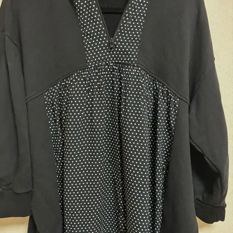 플라보아 도트 무늬 맨투맨 블랙 맨투맨 후드티