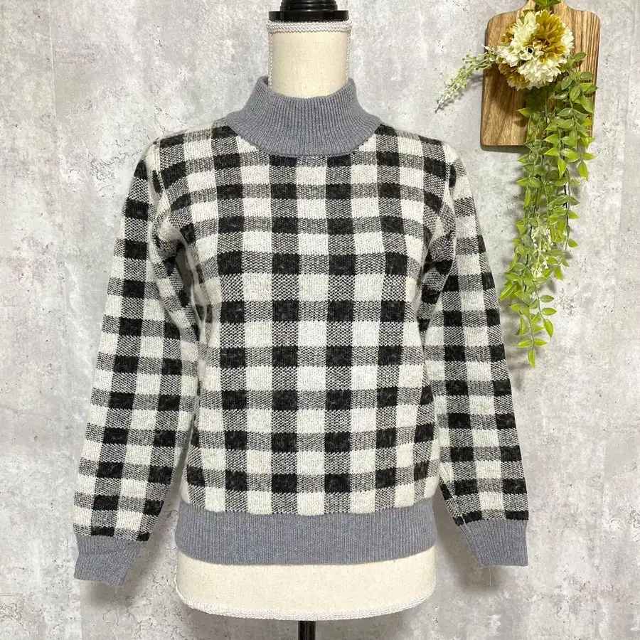 [ embody town's ] 하이넥 니트 깅엄 체크 모헤어 울 혼방