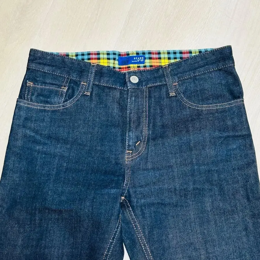 BEAMS 빔즈 스트레이트 데님 다크 블루 체크 안감 일본제