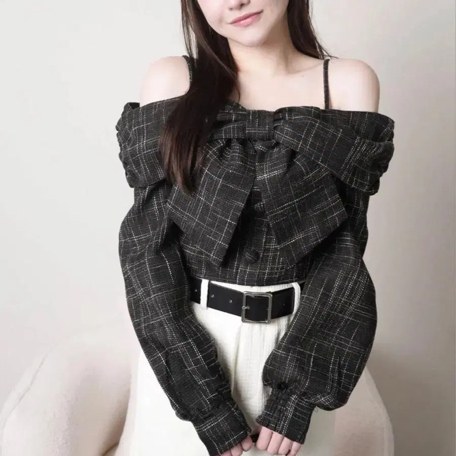 [ 당일 발송 ] 리본 오프숄더 롱 슬리브 상의