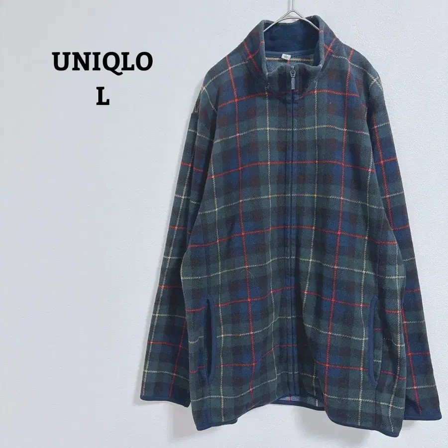 유니클로 플리스 자켓 풀 집업 체크 겉옷 하이넥 L