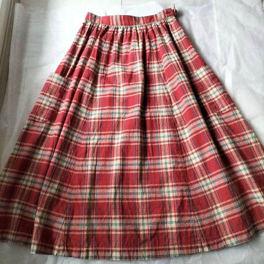 마드모아젤 논논 마드라스 체크 플레어 스커트