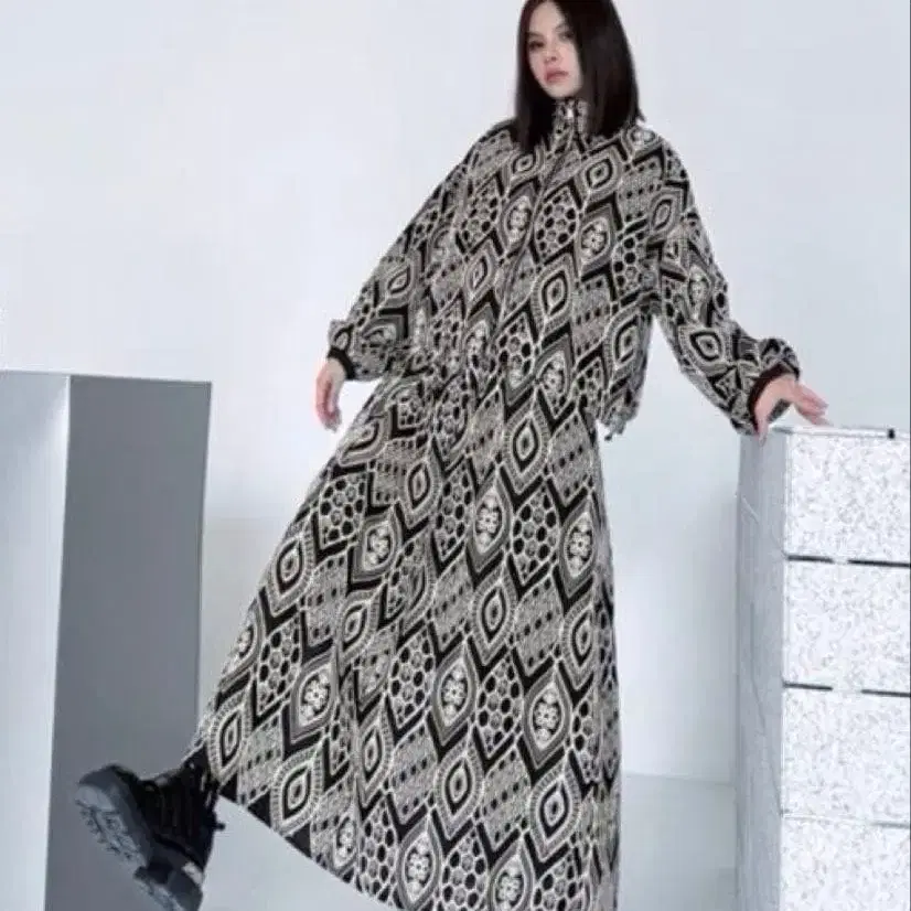 기하학 패턴의 벌룬 슬리브 롱 드레스와 플레어 스커트 세트. 출퇴근부터 가벼운 외출까지 폭넓게 활약해 줄 아이템입니다. 다양한 계절에 돌려입기 좋은 우수한 아이템. 이 한 벌로 코디가 완성됩니다 ♪ 하의와도 궁합이 좋습니다. 지퍼를 끝까지 채우면 블라우스처럼 입을 수 있습니다. 이너를 입고 오픈해서 입으면 또 다른 분위기를 연출하는 뛰어난 아이템입니다. 배 주위를 커버해 주는 여유로운 실루엣. 총액 ¥18,549 셀렉샵에서 약 20,000엔에 구매. 상하의 세트를 원하시는 분은 세트 할인을 해 드리니, 댓글란에서 연락 주세요. 상담해 드리겠습니다. - 디자인: 기하학 패턴의 블랙과 화이트 프린트 - 스타일: 자켓과 롱 스커트 셋업 - 소재: 약간의 탄력이 있지만 부드러운 느낌의 원단 - 사이즈: 프리 - 특징: 넉넉한 실루엣 - 신발: 블랙 부츠를 매치한 스타일 - 디자인: 기하학 패턴의 롱 드레스 - 스커트 스타일: 플레어 스커트 - 세트 내용: 상의와 스커트 세트 - 색상: 블랙과 화이트의 대비 - 소매 스타일: 벌룬 슬리브 - 허리: 허리밴딩 방문해 주셔서 감사합니다. 사이즈 - FREE SIZE