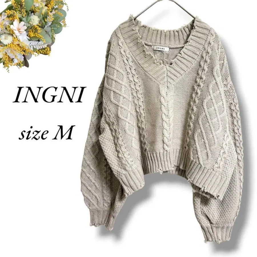 INGNI 케이블 짜임 V넥 스웨터 M 그레이지 데미지풍 4298