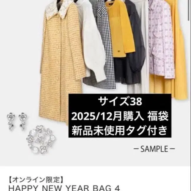 HAPPY NEW YEAR BAG (220,000엔) 사이즈: 38 1 코트 2 원피스 3 원피스 4 니트탑 5 스커트 6 반지 7 반지 8 브로치 총액 60만 엔 이상의 상품입니다. 상자가 커서 메루카리 캠페인 중에 판매 완료를 원하기 때문에, 즉시 결제해 주시는 분들만 약간의 가격 인하가 가능합니다! 예시로, 네이비 스커트 77,000엔 울 소재로 네이비 색상의 사용하기 쉬운 스커트입니다. 원피스 181,500엔 르네의 인기 트위드 MALHIA KENT 마리아 켄트의 원피스입니다. 매년 품절이기 때문에 의욕적으로 2025년 12월에 구매하여 얼마 전 도착했지만, 어린아이가 있어 좀처럼 착용할 기회가 없을 것 같아, 편하게 입을 수 있을 것 같은 니트탑과 올인원 2점만 빼두었습니다. 위 목록의 상품들은 구매 가격보다 저렴하게 양도해 드립니다. 그대로 르네의 종이상자에 담아 익명 배송으로 우송해 드리겠습니다. 잘 부탁드립니다. 얼룩, 찢김, 냄새 등 - 없음