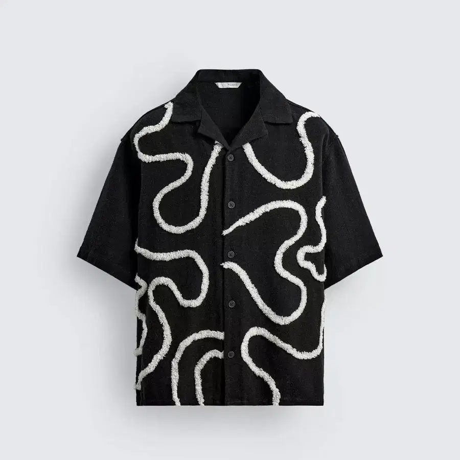 [ 미사용 새상품 ] ZARA 자라 블랙 엠보싱 자수 셔츠 S