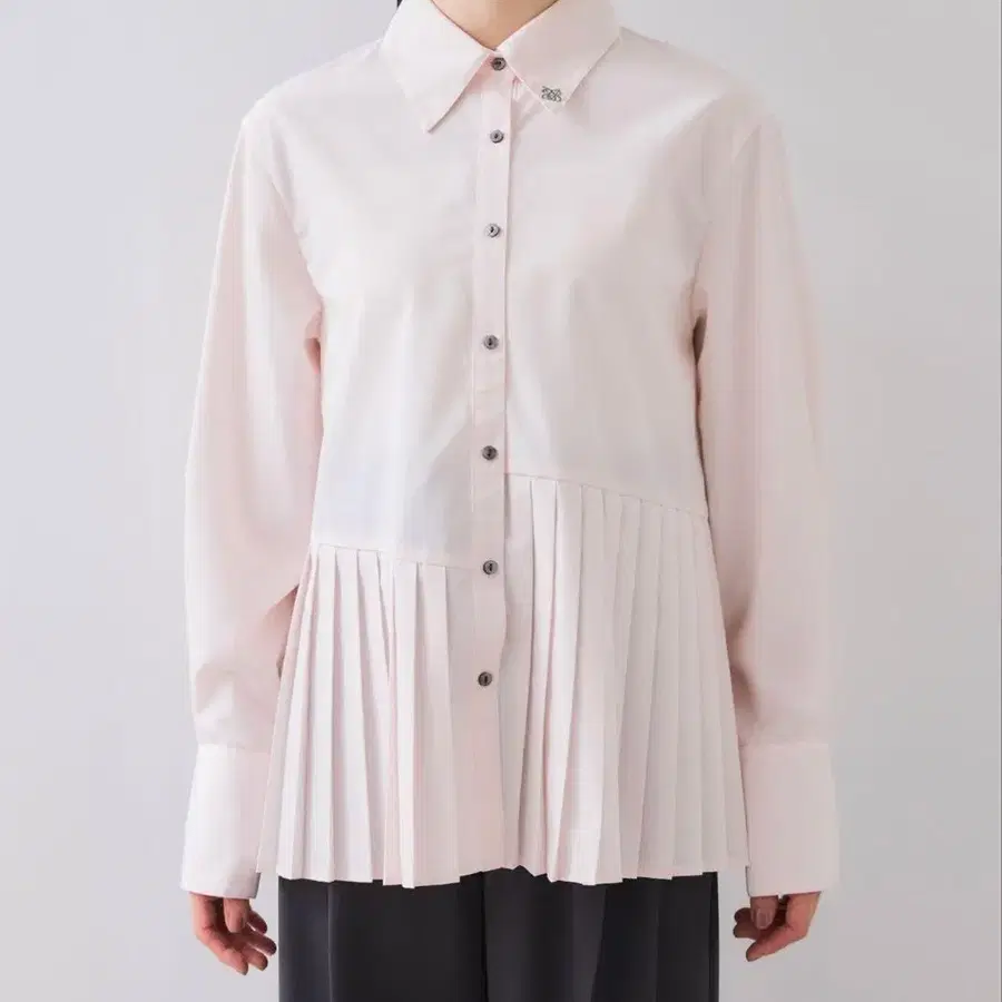 플리츠 포함 핑크 긴팔 셔츠/이지케어