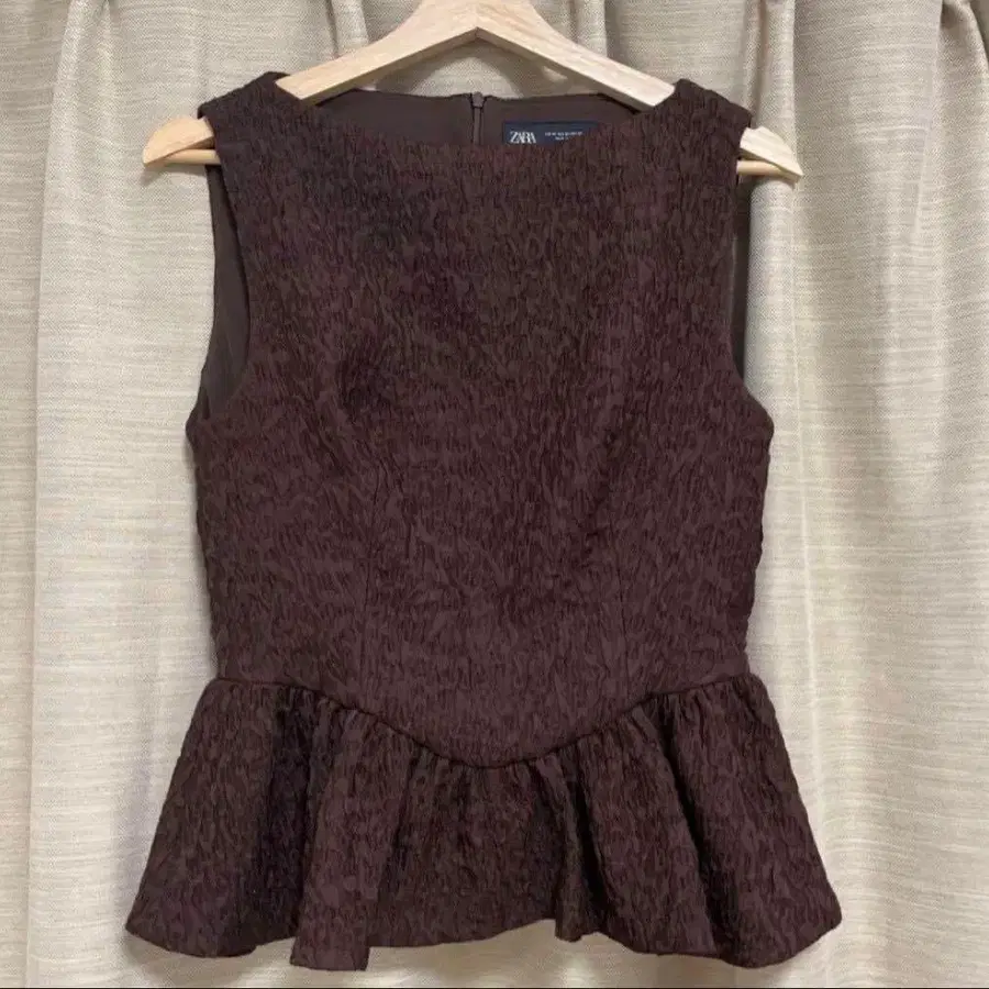 [ 새상품급 ] ZARA 브라운 프릴 슬리브리스 M