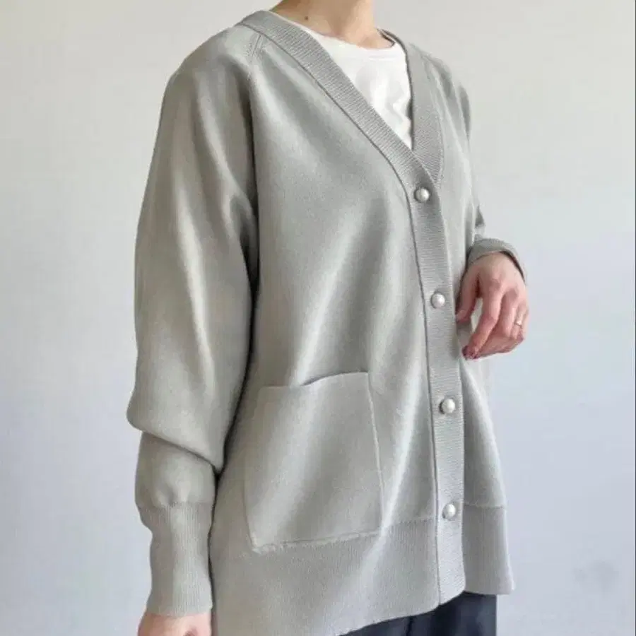 그린 라벨 모조 진주 버튼 소우바리 V넥 가디건
