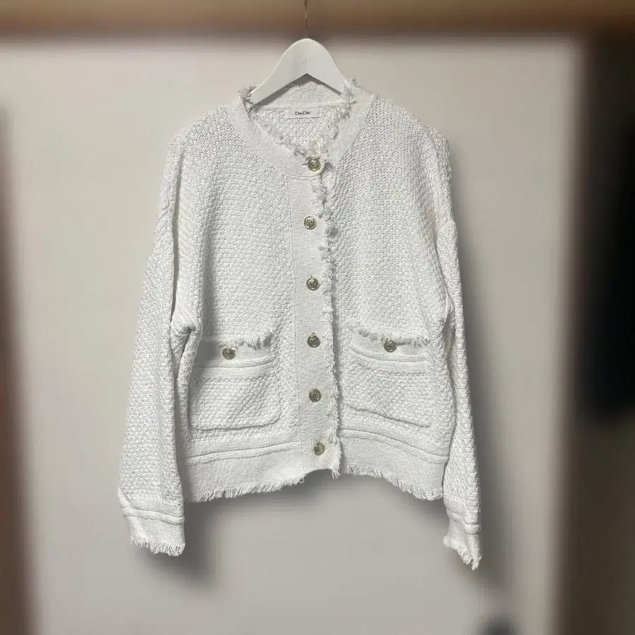 DouDou 트위드 니트 화이트 자켓 프린지 마감
