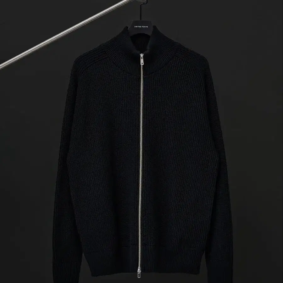 프론트의 지퍼가 인상적인 집업 니트. 퍼블릭 도쿄