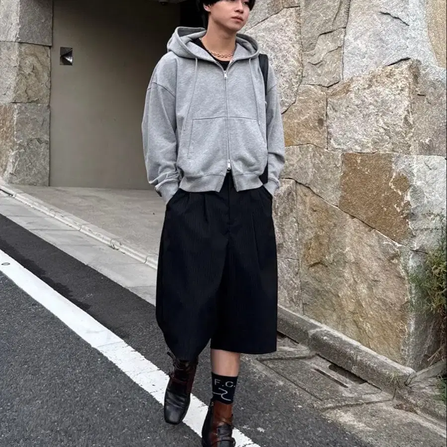 SINSS 헤비웨이트 더블 지퍼 후디 (짧은 기장) 그레이