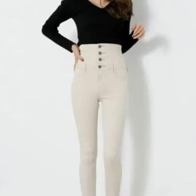 리엔다 하이웨스트 스키니 데님 베이지