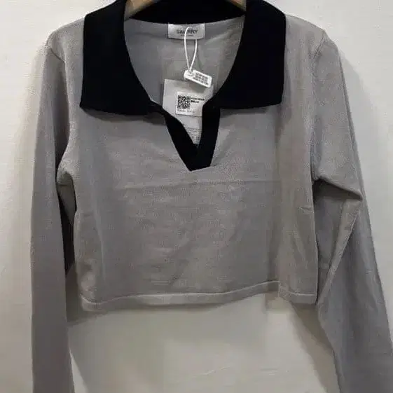 그레이와 블랙의 V넥 카라 부착 긴팔 상의