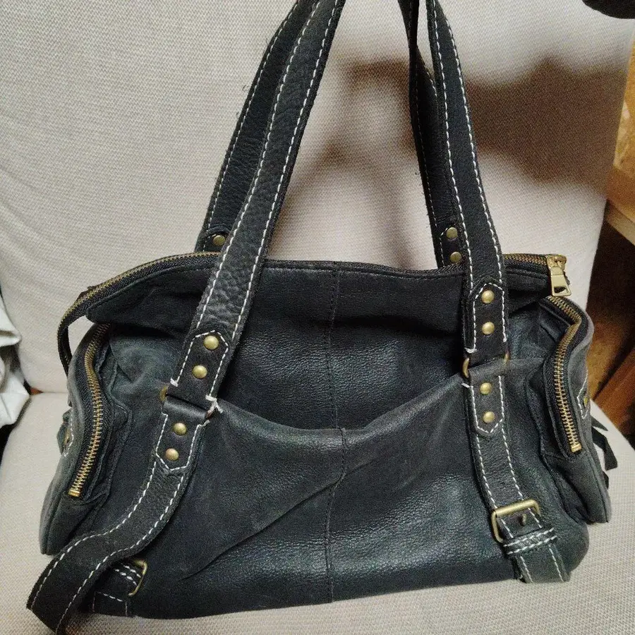 TRES 트레 블랙 가죽 핸드백 지퍼 포함