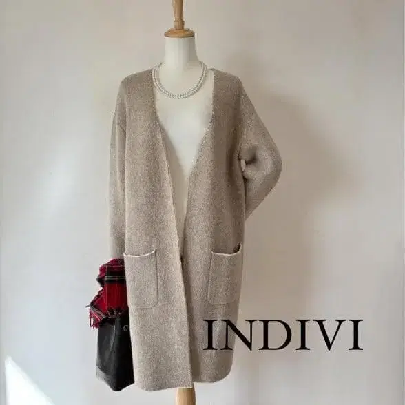 [컨디션 최상] INDIVI 모헤어 혼방 롱 니트 가디건 울 베이지