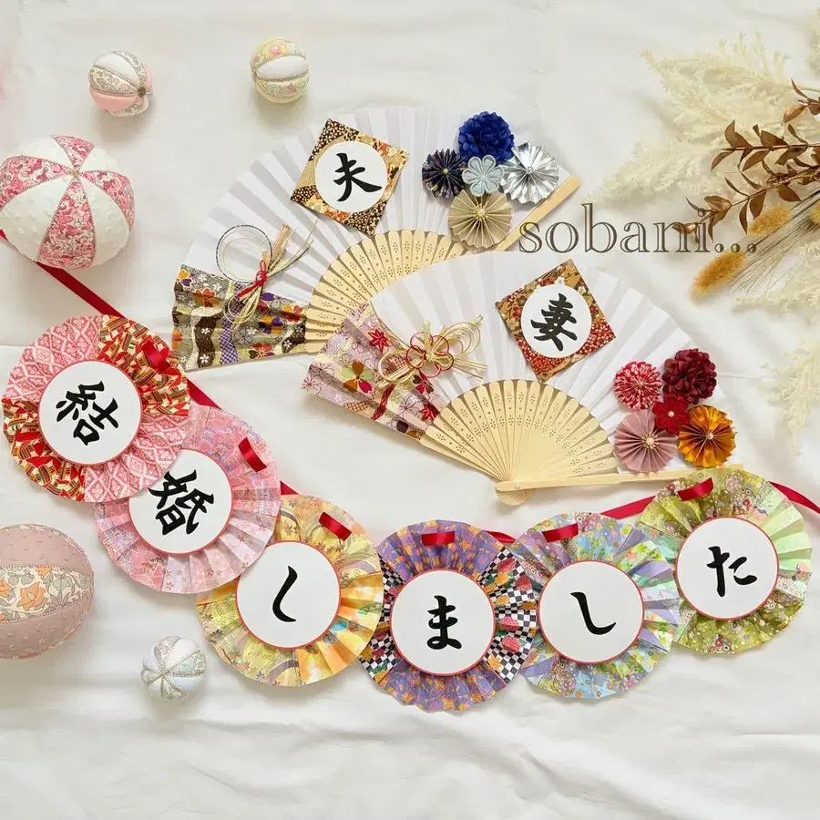 일본 의류 촬영이나 일본 결혼식에 딱 맞는 가랜드와 부채 프롭스 세트입니다.