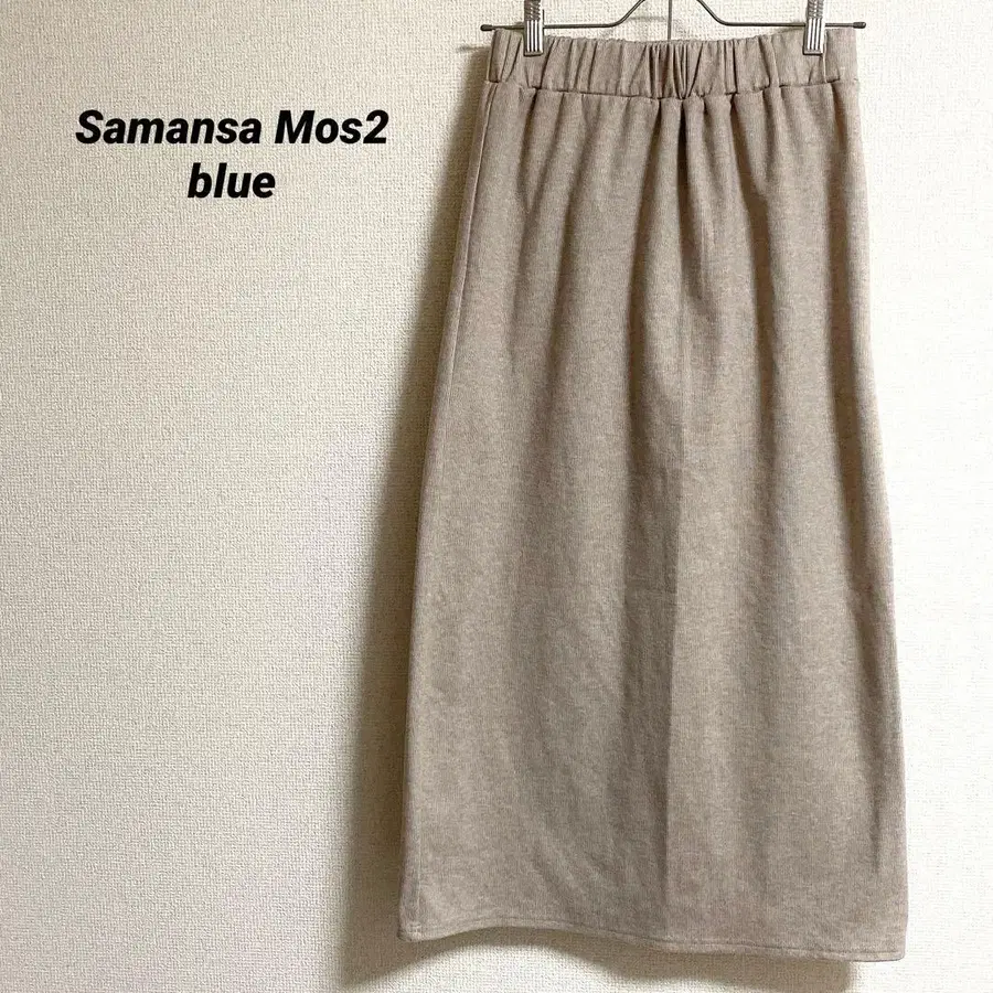 사만다 모스모스 블루 베이지 롱 스커트 허리밴딩 루즈 프리