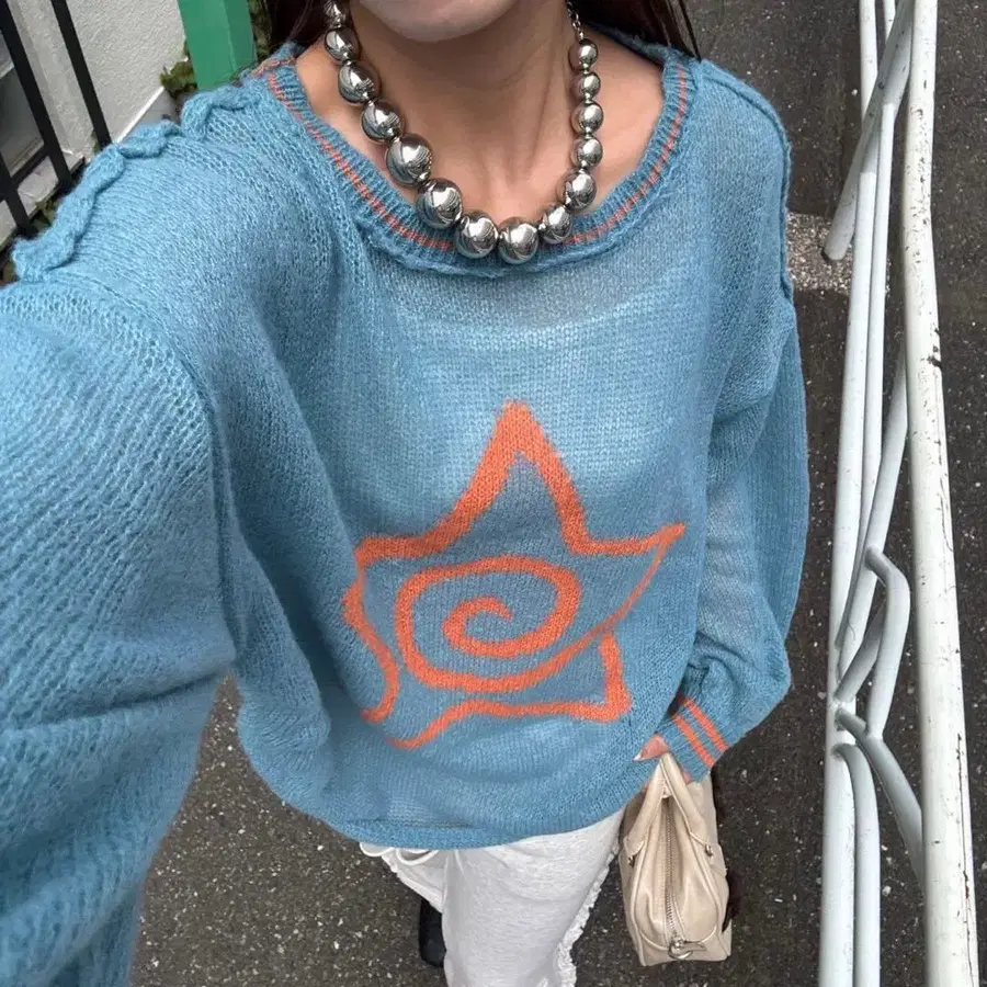 CIAOPANIC 스타 로고 셔링 시어 니트 블루