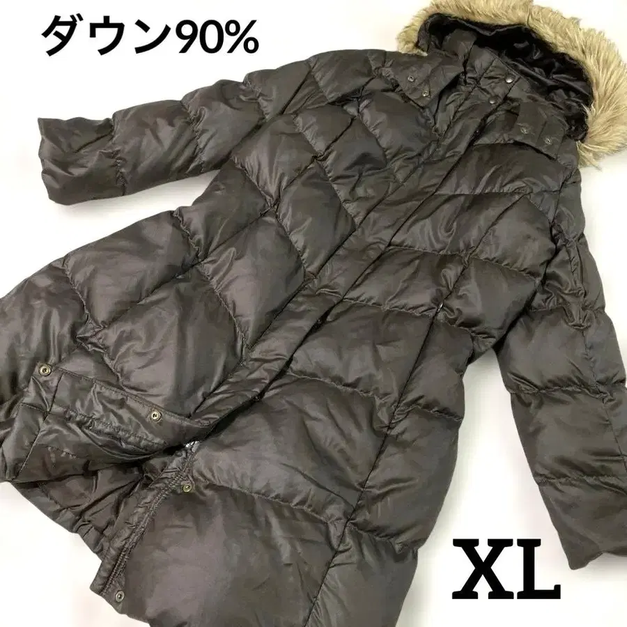 새상품급 유니클로 퍼 다운 코트 롱 기장 XL 브라운 매트 자켓
