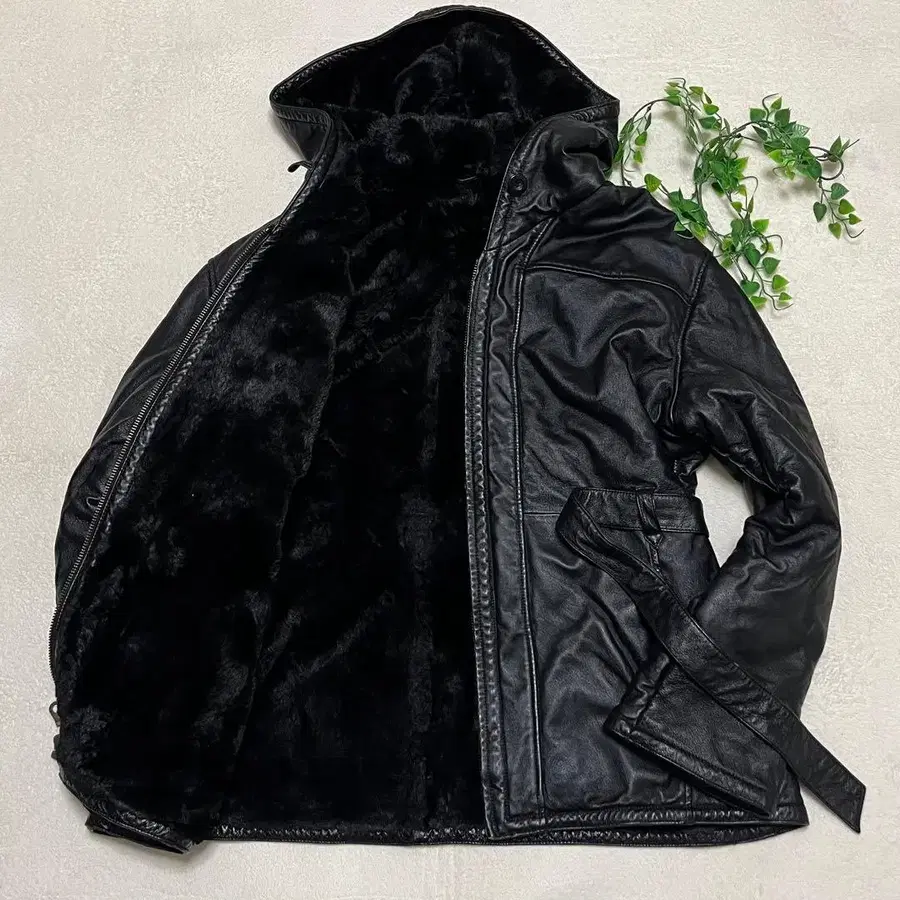 • And A 가죽 자켓 42 블랙 후드 집업 천연 가죽 리브