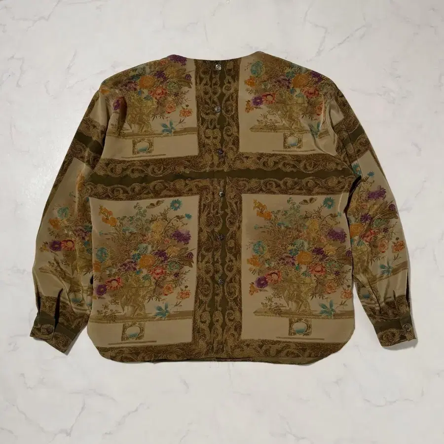 클래시컬한 꽃무늬가 인상적인 시어 소재의 블라우스입니다.