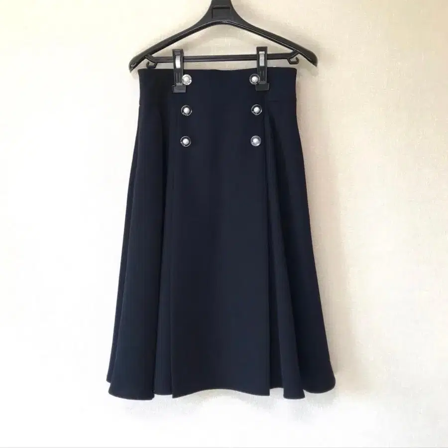 새상품급 Rene 미디 스커트 네이비 펄 버튼 36