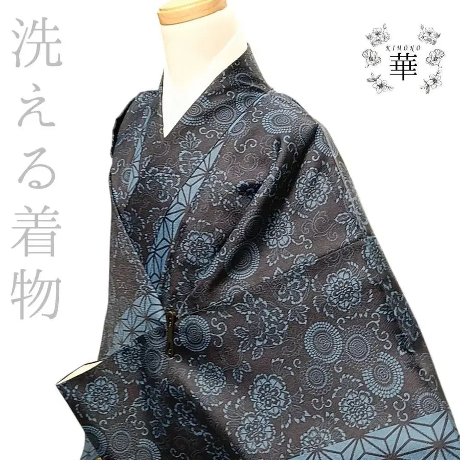 파란색 베이스의 색감이 멋진 기모노입니다.