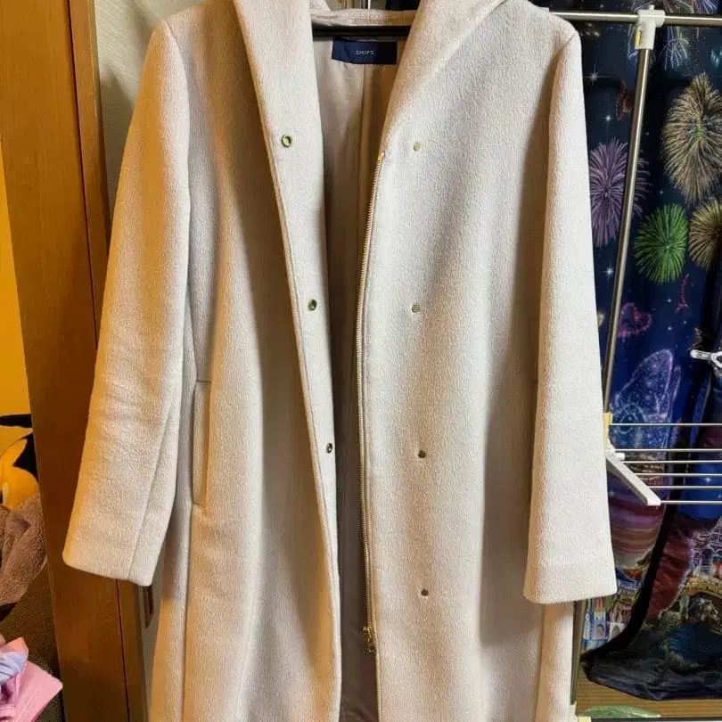 새상품급 클리닝 완료 SHIPS 후드 부착 울 코트 화이트 베이지