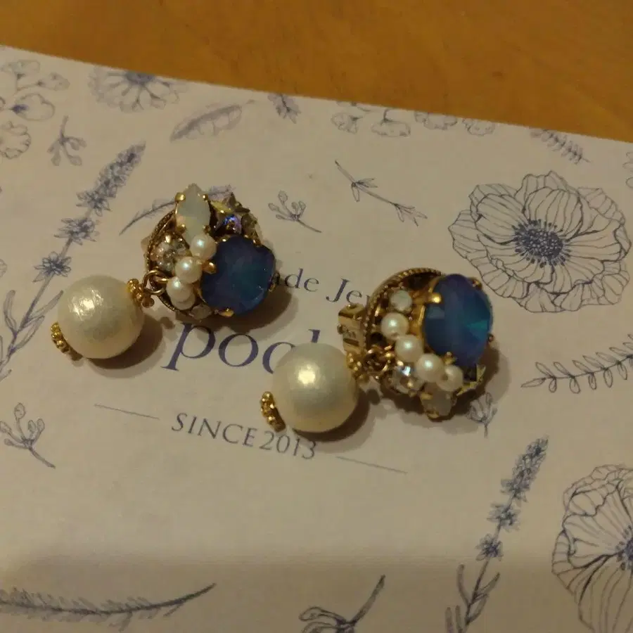 pochi 코튼 펄과 파란색 스톤의 귀찌