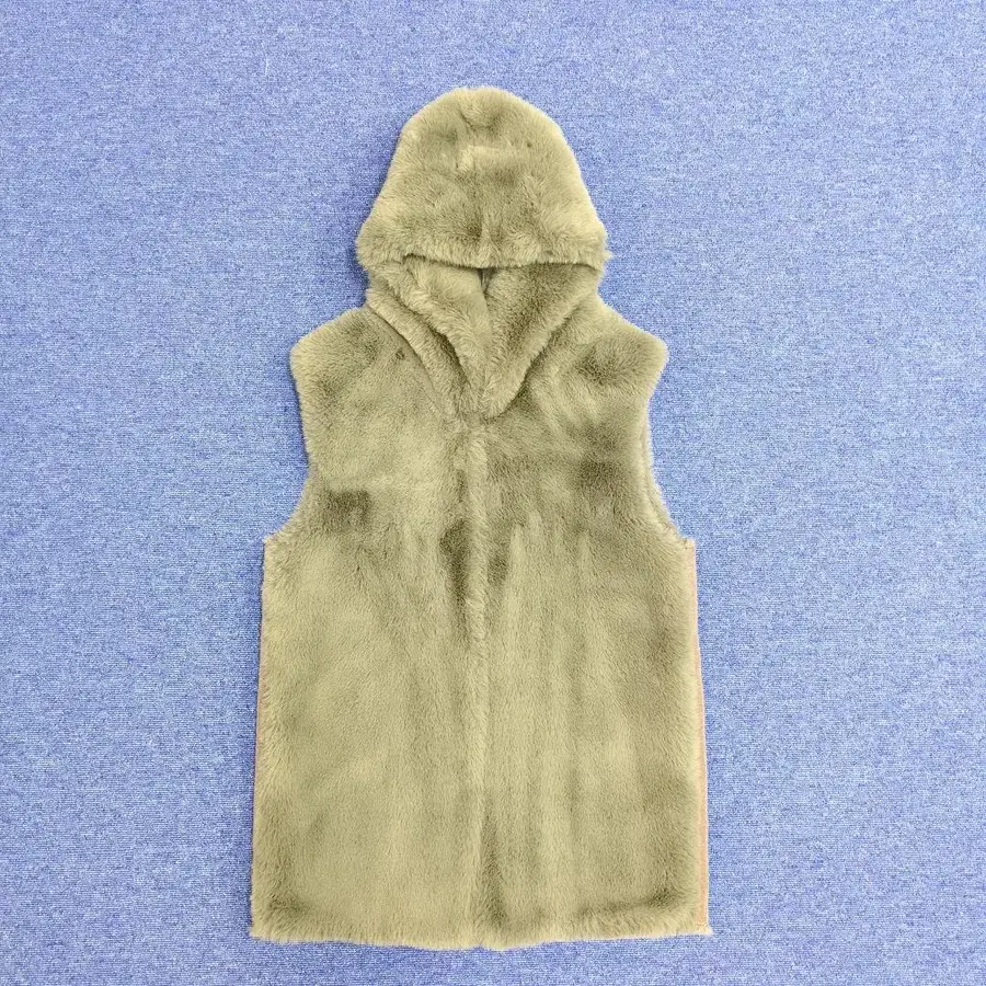 BARNEYS NEW YORK 후드 부착 인조 모피 베스트