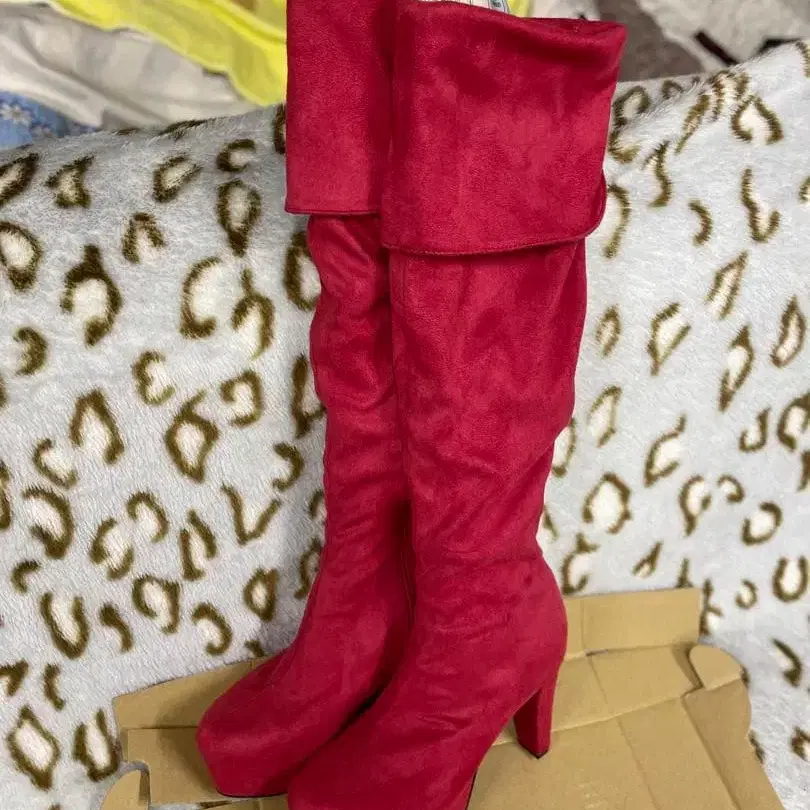 빨간색 스웨이드 느낌 롱 부츠 하이힐 레드