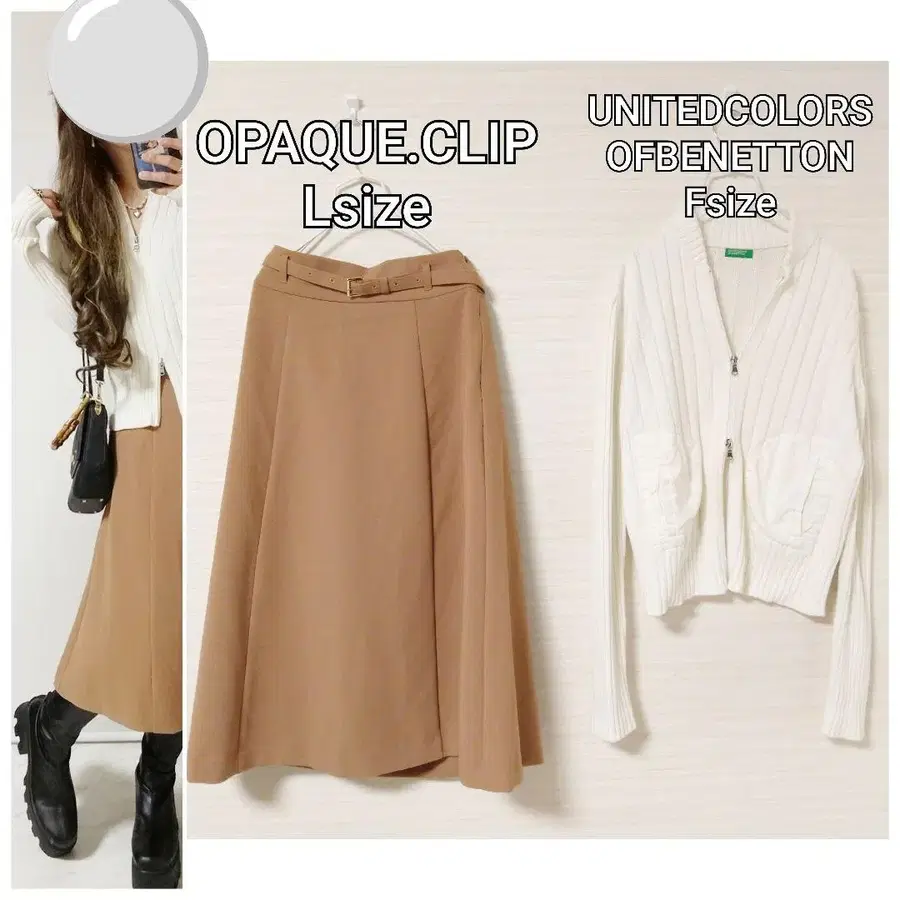 코디 세트 더블 지퍼 상의 벨트 부착 스커트