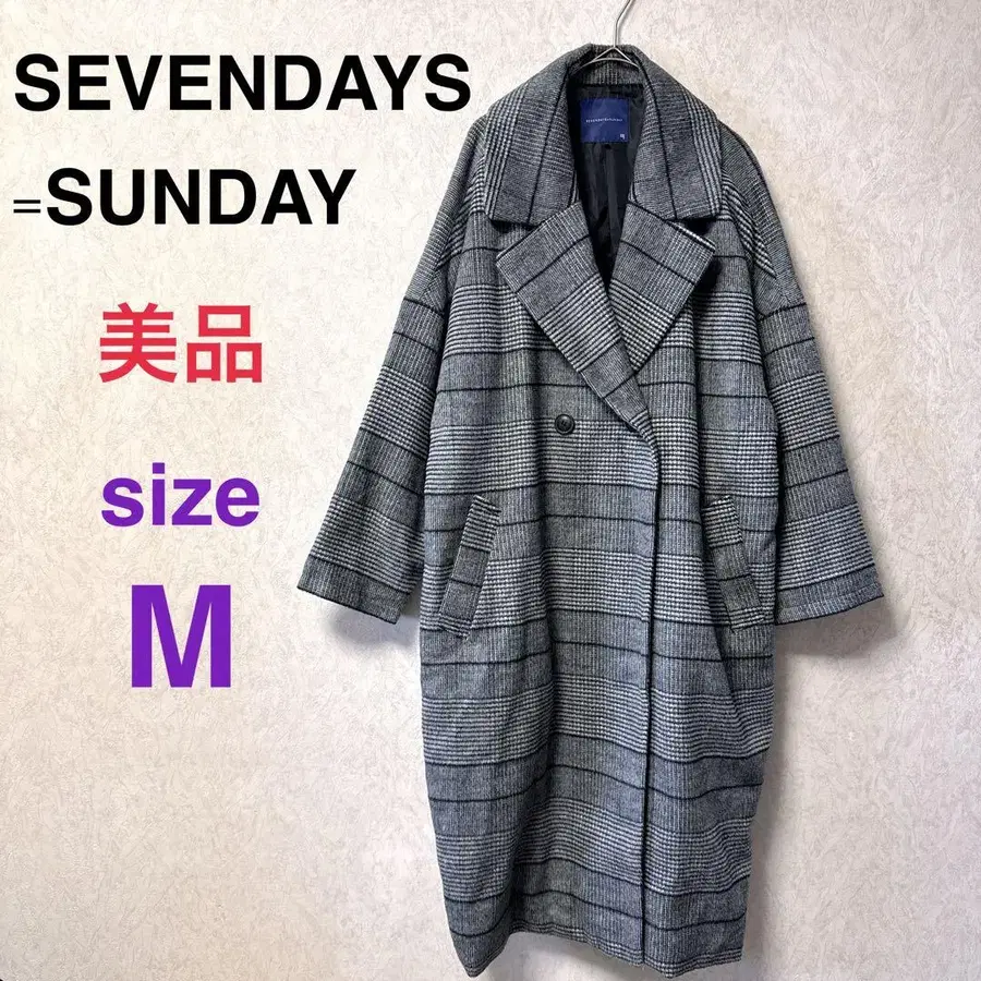 [ 새상품급 ] 세븐 데이즈 선데이 글렌체크 패턴 롱 코트 M 그레이