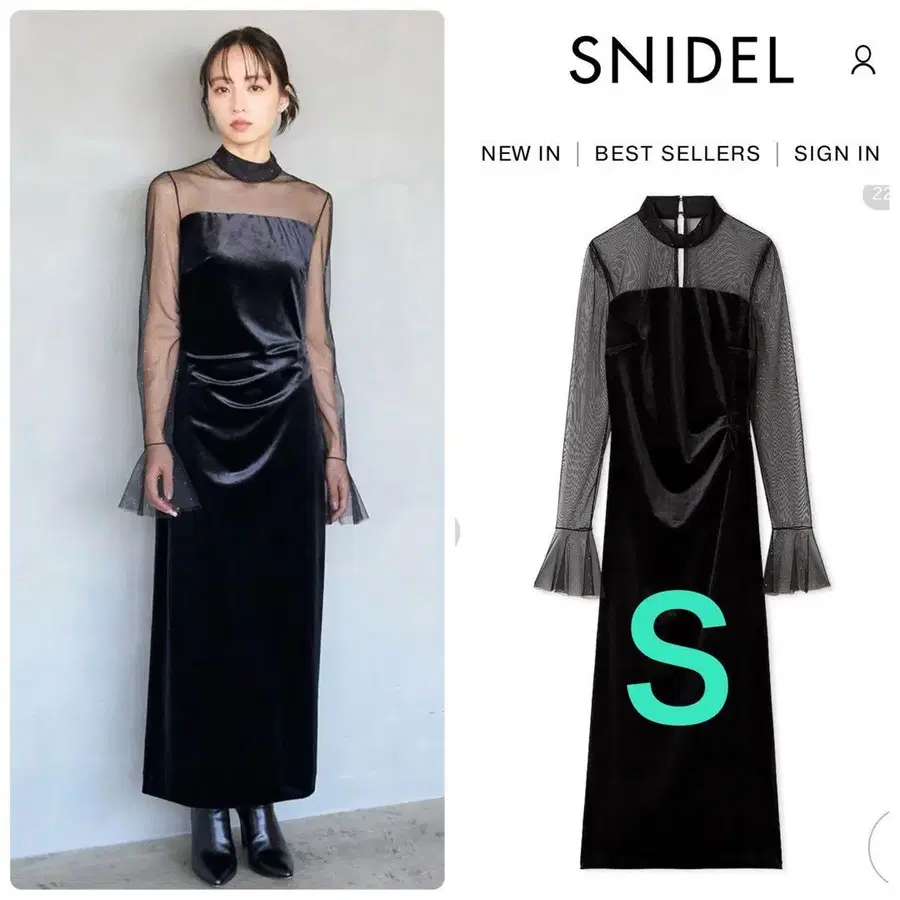 신상 새상품 SNIDEL 스나이델 시어 도킹 벨로아 드레스 BLK