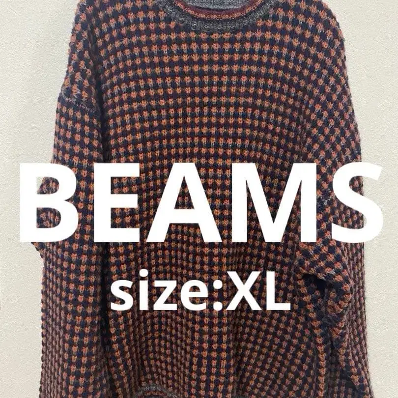 BEAMS 빔즈 크루넥 스웨터 니트 오렌지 블랙 체크 XL