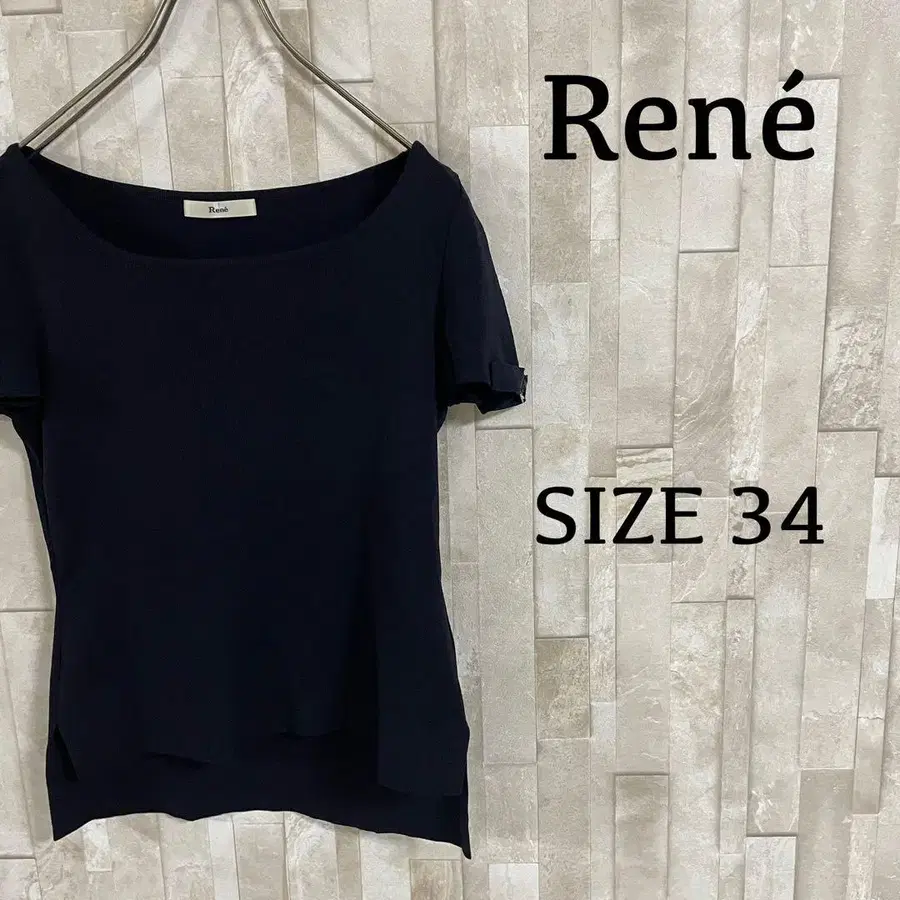 Rene 네이비 반팔 니트 비즈 카라 부착
