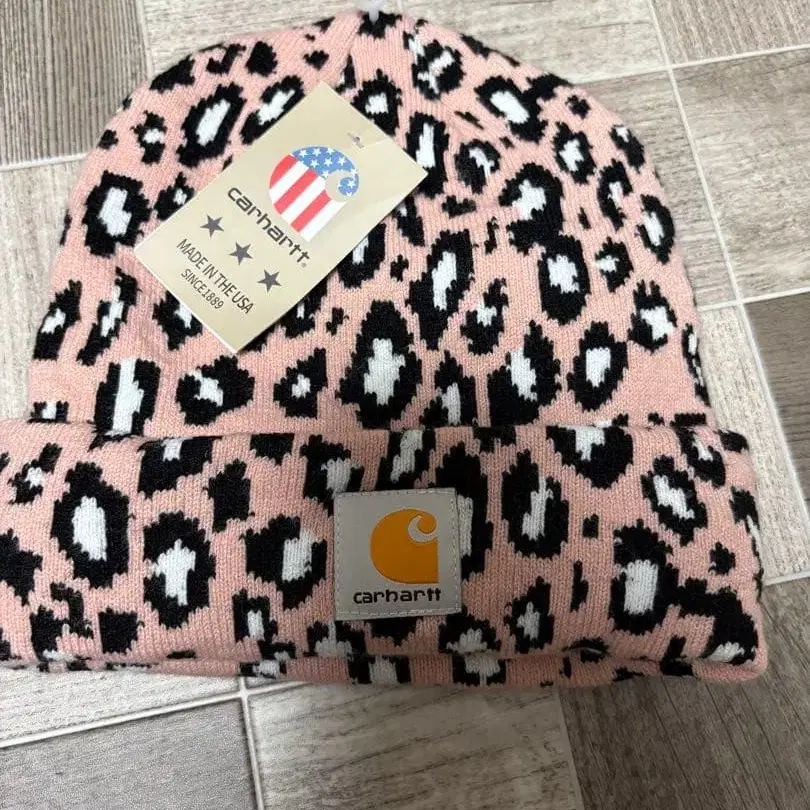 [택 포함 새상품] Carhartt 칼하트 니트 모자 비니 레오파드 핑크